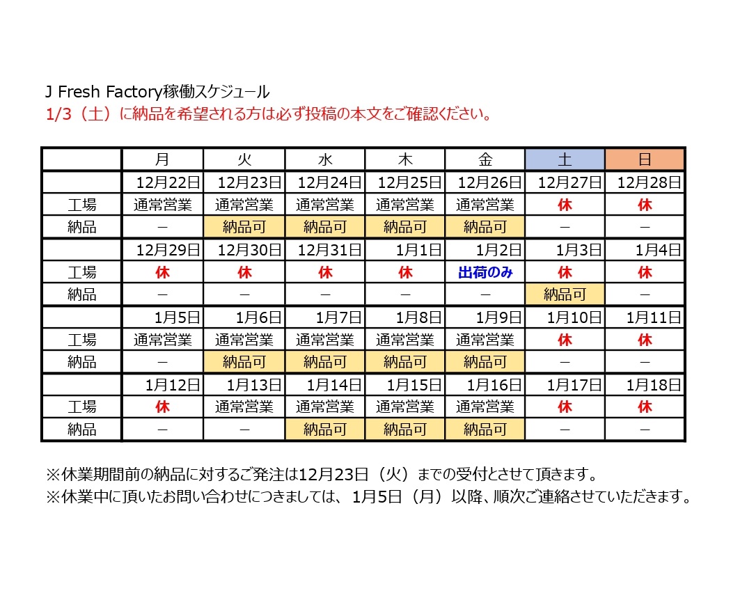 冬季休業のお知らせ ブログ 2025.12.26 お客様 各位 平素より格別のご愛顧を賜り、誠にありがとうございます。誠に勝手ながら、表記の期間を冬季休業とさせて頂きます。ご迷惑をおかけすることと存じますが、何卒ご理解、ご了承の程お願い申し上げます。